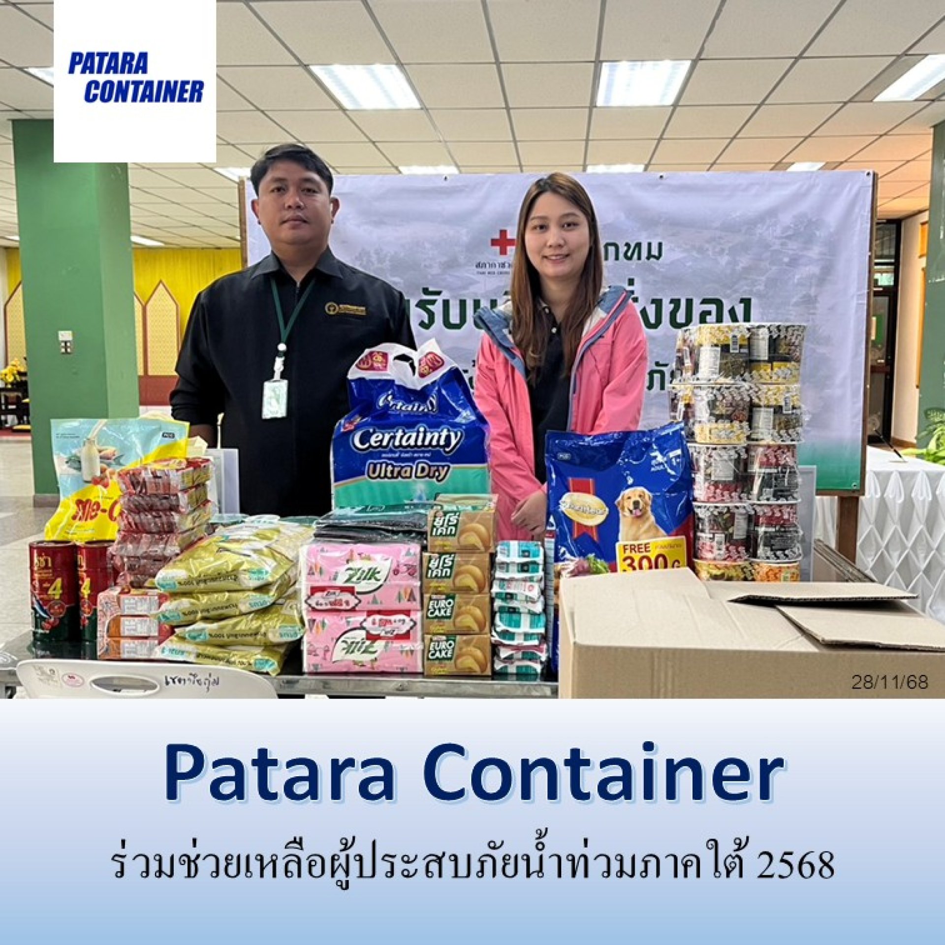 วันที่ 28 พฤศจิกายน พ.ศ. 2568 บริษัท ภัทร คอนเทนเนอร์ จำกัด นำโดย คุณกมลพร ภัทรวงศา กรรมการผู้จัดการ ได้ร่วมส่งมอบสิ่งของจำเป็นเพื่อช่วยเหลือผู้ประสบภัยจากเหตุการณ์น้ำท่วมในพื้นที่ภาคใต้ของประเทศไทย โดยนำสิ่งของบริจาคไปยังจุดรับของของสำนักงานเขตบึงกุ่ม กรุงเทพมหานคร เพื่อส่งต่อความช่วยเหลืออย่างเร่งด่วนแก่ผู้ที่ได้รับผลกระทบ