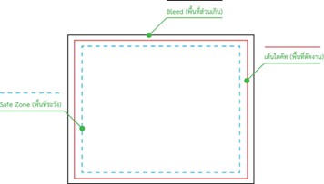 Safe Zone คือพื้นที่ด้านในจากขอบตัดประมาณ 3–5 มิลลิเมตร สำหรับวางข้อความหรือองค์ประกอบที่สำคัญ เพื่อป้องกันการถูกตัดออกโดยไม่ตั้งใจ